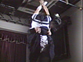 セーラー服姿の杉並雪枝の右足に春原悠里(すのはらゆうり)が白い包帯を巻いていきます。紺色のスカートの下から見え隠れする雪枝の白い清潔な太腿と、悠里の手の指の繊細な動きが、ドキッとする位にエロチックです。左手にも包帯を巻かれた雪枝を頭上両手吊りに縛りあげます。痛々しく可憐に縛られた雪枝の身体に悠里が寄り添い、スカートをまくりあげ、白いパンティに包まれた可愛らしい尻をみんなに見せびらかします。そして悠里が行う雪枝への唇なぶり、口膣なぶりから舌責めの残酷愛撫テクニック。洗濯ばさみによる舌いじめ、竹箸による舌ばさみ。さらに悠里は筆を持って雪枝の臍から下腹部、太腿をくすぐります。とくに臍なぶりのシーンは圧巻です。やがて後ろ手にしっかり縛りなおし、片足開股縛り、乳房を露出しての乳首責めへと(有)が行う責めはますます執拗になっていきます。白いパンティにびっちり包まれた下腹部の新鮮で鮮烈なエロチシズム。ロリコンの色香がにじむ汚れを知らぬ可憐な被虐性を描写した60分です。